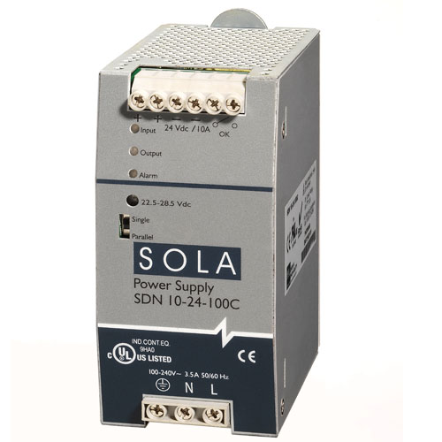 SOLAHD SDN10-24-100C AC/DC DIN Rail Power Supply Compact, Adjustable, Fixed, 1 Output, 85 VAC, 264 VAC, 240 W, 24 VDC