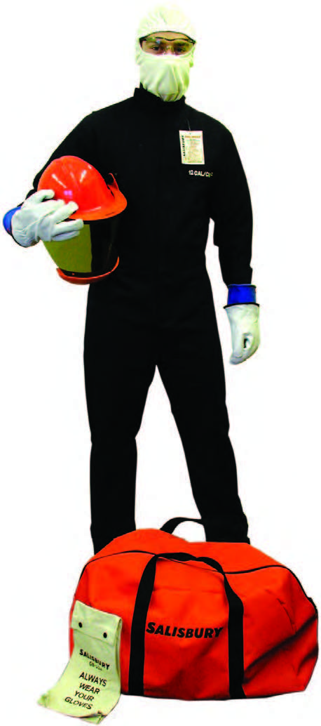 Kit de proteccion contra arco eléctrico clasicicación ATPV de 8 cal/cm2.  SKCA8 Salisbury, incluye lo siguiente: Overol cubretodo, casco y careta de protección facial, AS1000HAT, una capucha pasamontañas AFHOOD con nivel de protección ATPV 8 cal/cm2, lentes de seguridad y bolsa de almacenamiento de equipo SKBAG.